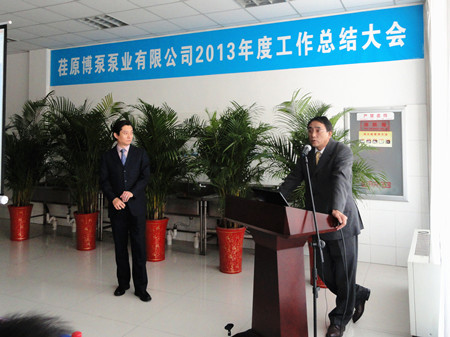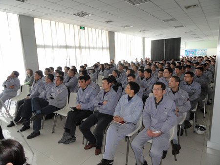 王總在講話中用詳實的數(shù)字,明晰的圖表,做了細(xì)致地分析和總結(jié)。對2012年之前的工作做了主觀和客觀的原因分析。在2013年的工作總結(jié)中,王總用成績和不足來概括:在2013的工作中,營業(yè)工作取得比較突出的成績,取得了訂單創(chuàng)新高;百萬機(jī)組項目100%容量訂單的簽訂等亮點,特別可喜的是,在EPC印尼項目中,鍋爐給水泵、循環(huán)水泵、凝結(jié)水泵一次性簽單,這在公司歷史上乃至行業(yè)中都是很少見的。在生產(chǎn)方面:發(fā)貨臺數(shù)創(chuàng)公司歷史之最;車間5S管理取得良好進(jìn)展;產(chǎn)品不合格率得到有效控制。在其他方面:公司采購引入比價采購環(huán)節(jié),降低采購成本;C型泵的改善方面,提高采購批量,降低采購價格,滿足生產(chǎn)各環(huán)節(jié)的需要。不足之處:營業(yè)方面行業(yè)訂單結(jié)構(gòu)不平衡;生產(chǎn)環(huán)節(jié)中生產(chǎn)秩序的保證、外購件的合格率以及設(shè)計出圖的時間有待改善;ERP環(huán)節(jié)錄入數(shù)據(jù)的及時性、準(zhǔn)確性方面還有待提高等等。